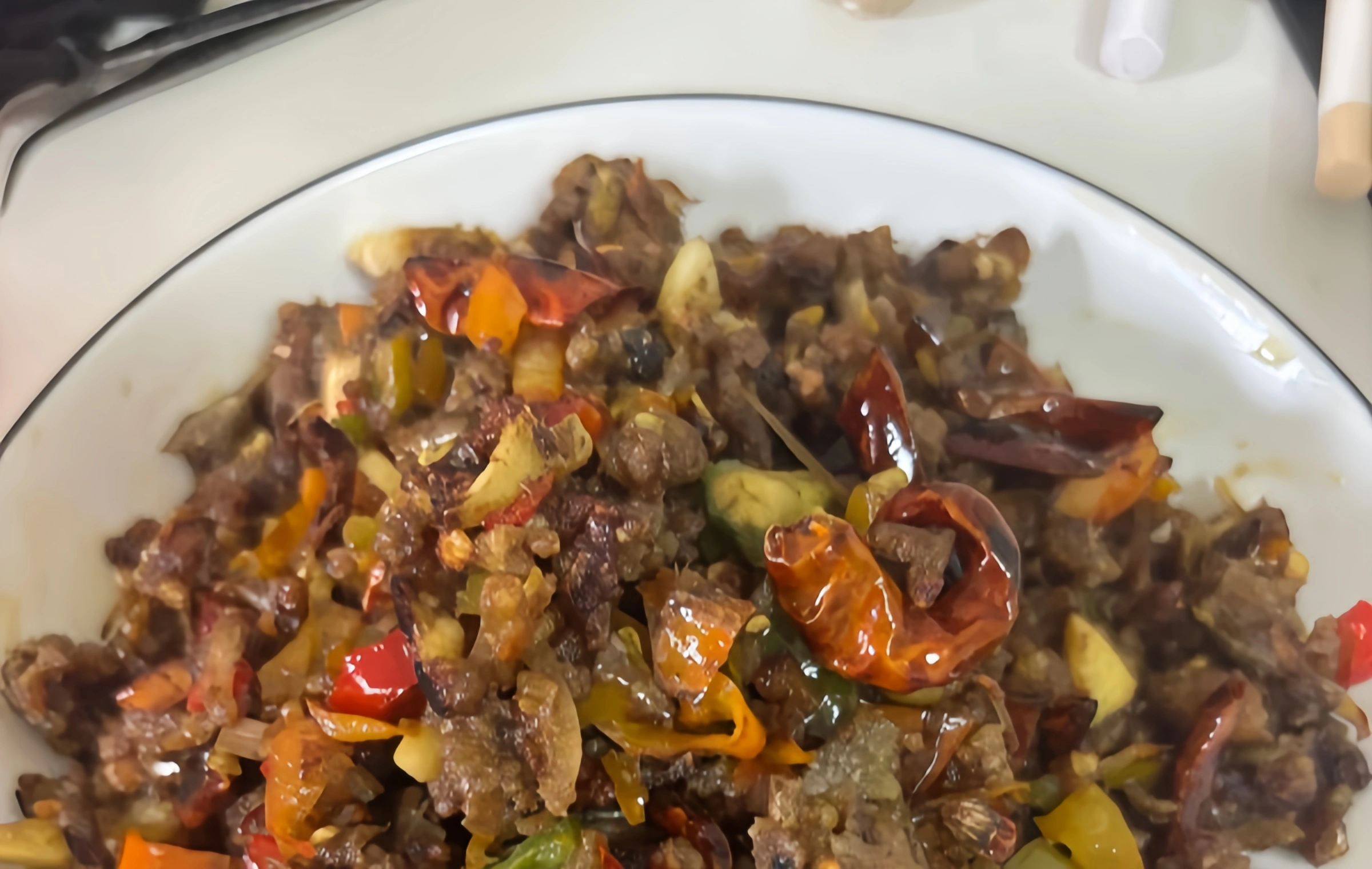 Characteristics: Drum-Beating Beef is a specialty dish that originated in Zhangjiajie's Yongding District. Made from beef tendons and the meat around the beef spine bones, this dish is known for its unique texture—soft yet crispy, with a rich, savory flavor. The beef is cooked until tender and then stir-fried with a blend of spices, creating a dish that is both aromatic and satisfying.
